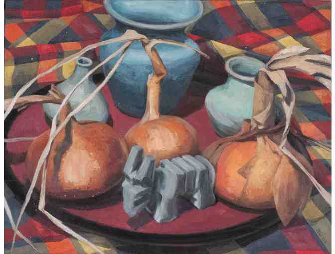 #97 Still life with pottery, onions, donkey