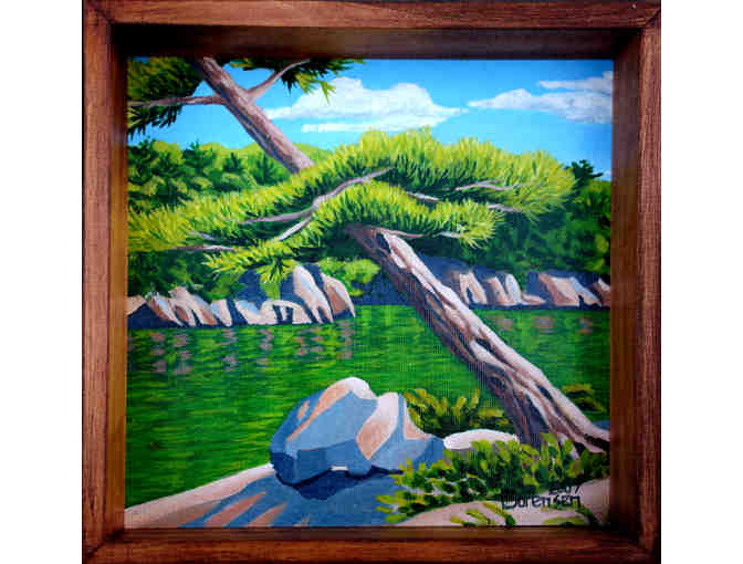 - "Leanin' Tree ~ Lake Clear" Original Acrylic, painted on site by local artist Linda Sorensen. Size 8" x 8". Wood frame.