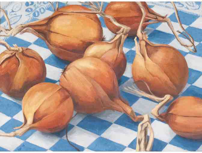 #10 Onions on blue-checked dishtowel
