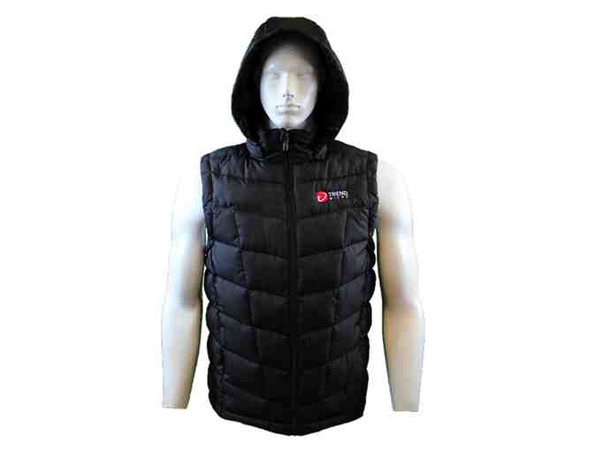 Stay warm in this black Spyder puffer vest! - 100% polyester nail head weave fabric - detachable hood with bungee cord and stopper active fit - zippered handwarmer pockets