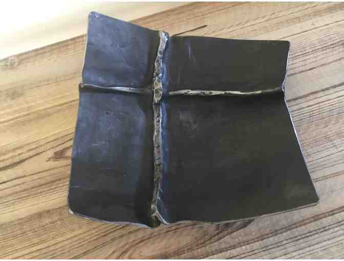 This beautiful square hand forged bowl was made in our studio using fold forming techniques. Made from ten-gauge steel the bowl is substantial in heft in addition to its natural beauty.