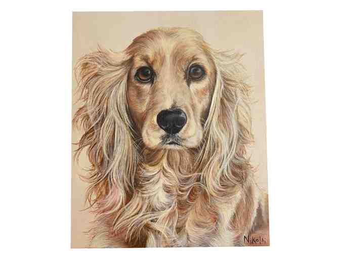 Enjoy this beautiful painting of Eleanor the cocker spaniel in your home or office, by Carolyn Nikolai Illustrations. Acrylic painting created on gallery style canvas. Measures: 10 in. x 12 in.