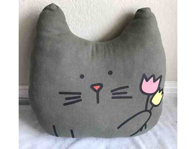 Pavilion Gift Company Blobby Cat - You're Pawsome Gray Cat Pillow Holding Flowers 14 Inch