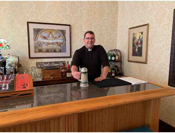Don't miss a great opportunity to get to know Fr. Garrett with your friends/family! He will host a cocktail party for 6 in the rectory at the "Saints & Sinners Pub."