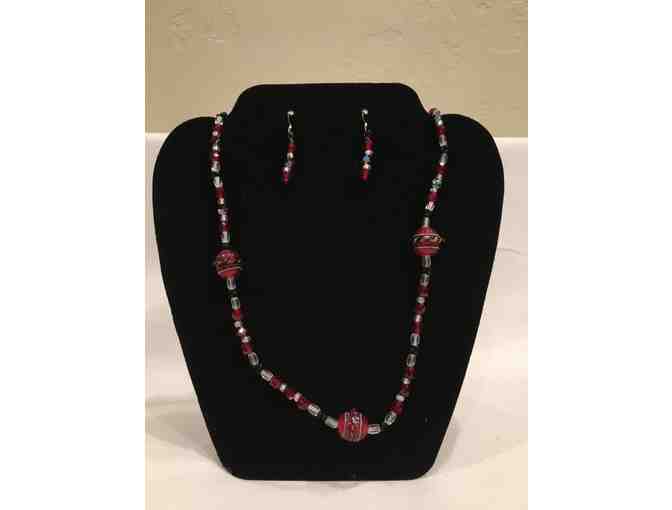 Red and black beaded necklace and earrings