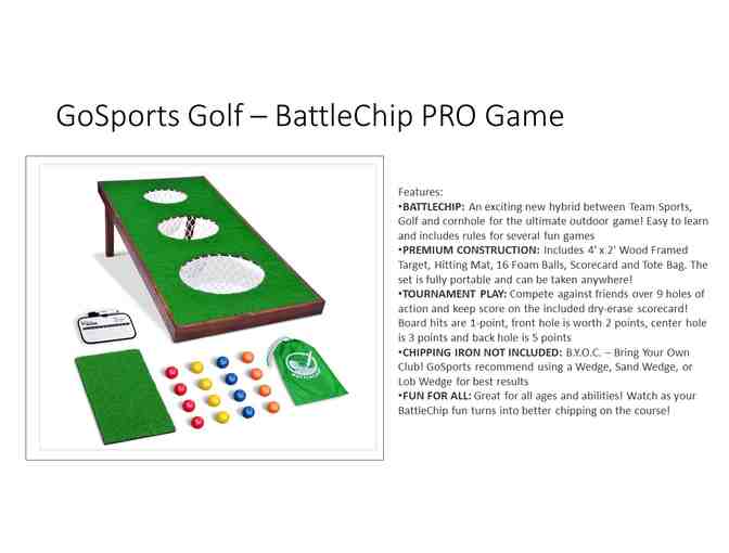 BATTLECHIP: An exciting new hybrid between golf and corn hole for the ultimate outdoor game. Easy to learn and includes rules for several fun games.