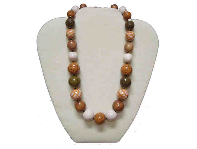 This 18" beaded necklace is handmade in Kenya.  The Kazuri company only hires single mothers and pays them a liveable wage with benefits, which is not so common in Africa.  The women form the beads from river clay, fire, glaze and string them into necklaces, earrings and bracelets. The designs are whimsical, stylish and sure to become a favorite accessory for you or someone special. Buying this piece helps these mothers to support their families and send their children to school.