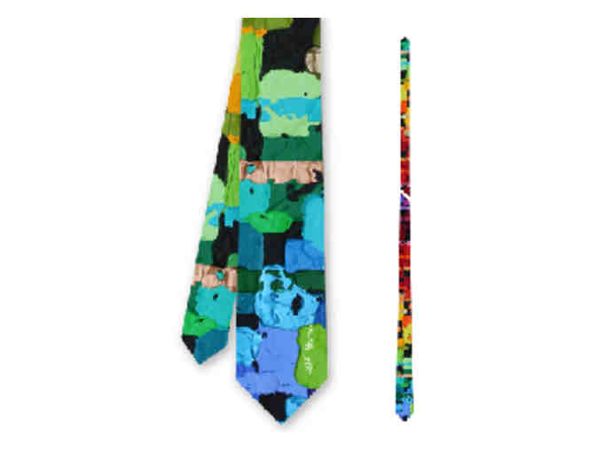 This beautiful Neck Tie features the artwork of Jeff Hanson “Party in Burano”. The colorful artwork is printed on recycled polyester twill at the eco friendly company, Knotty Tie. This American company provides meaningful employment by skilled resettled refugees while building products using fabrics made from recycled plastics certified by the Global Recycled Standards.