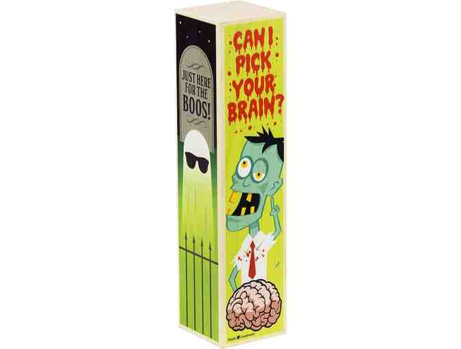 Decorate your home for the holidays with our large solid pine block with a Halloween theme. The block measures 2.75" x 2.75" x 11.5" tall. Four designs include a ghost that's "just here for the boos", a zombie asking "can I pick your brain?", a witch on a broomstick, and a haunted house.