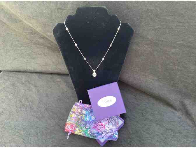 Custom handmade piece by Gail Moriarity of Colibri Design. A simple, elegant 18" sterling silver necklace with Swarovski Crystal accents and a delicate Swarovski Crystal teardrop pendant.