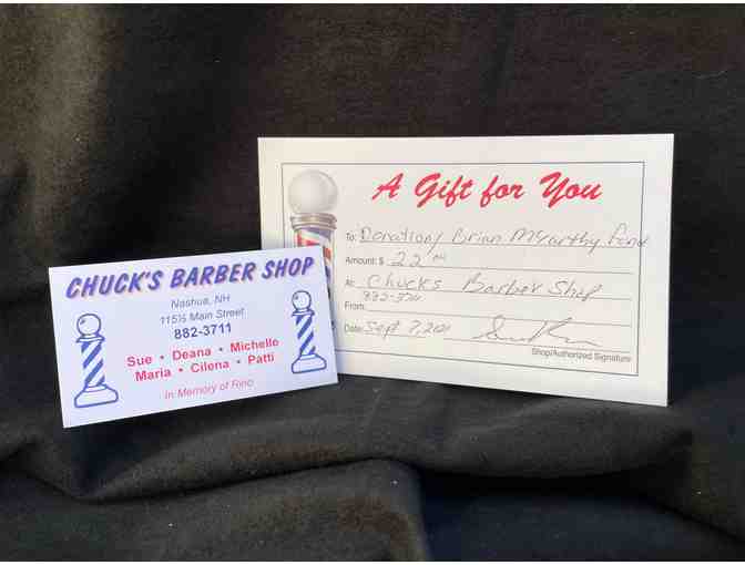 $22 Gift Certificate to Chuck's Barbershop in Downtown Nashua, NH.