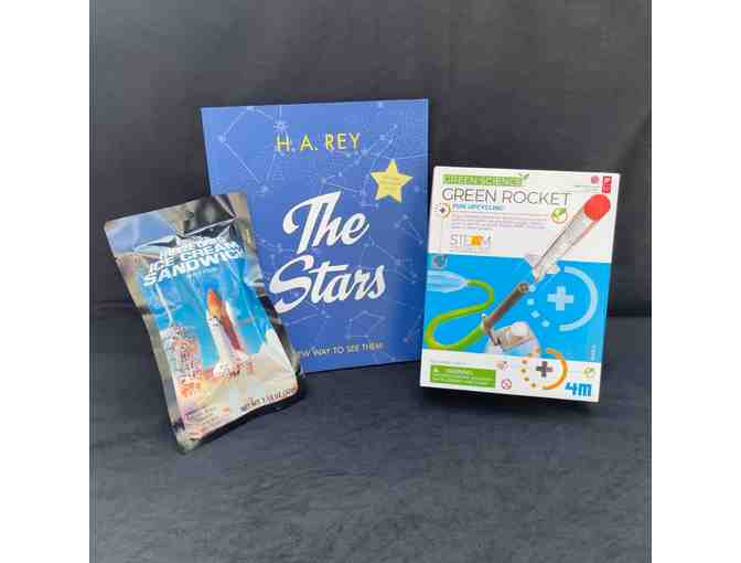 Treat a budding astronaut with Freeze dried astronaut Ice Cream, a Green Rocket kit, and "The Stars:A New Way to See Them" By H.A. Rey. This book contains vivid text with charts and maps to follow the positions of the constellations the year round.
