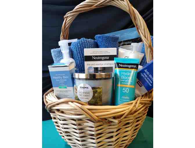 Pamper your skin with this basket filled with Neutrogena products, bath towels and candle. Cleanse, hydrate, and brighten your skin with the #1 dermatoligist recommended products.