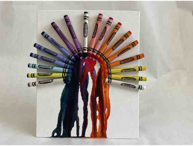 This 8x10 canvas features a rainbow made from melted crayon art. Hand made by a Boys & Girls Club member this piece will brighten any area.