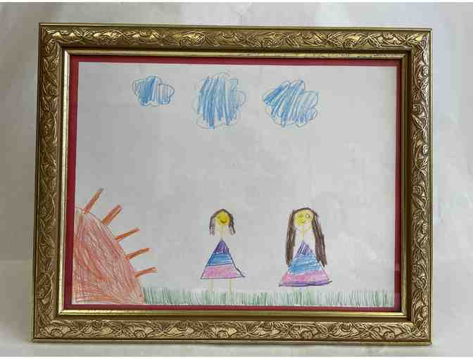 Framed original 8x10 artwork by Boys & Girls Club member. My best friend and I love to play in the sunshine! We draw together and laugh at silly jokes. I met my friend at the Club!