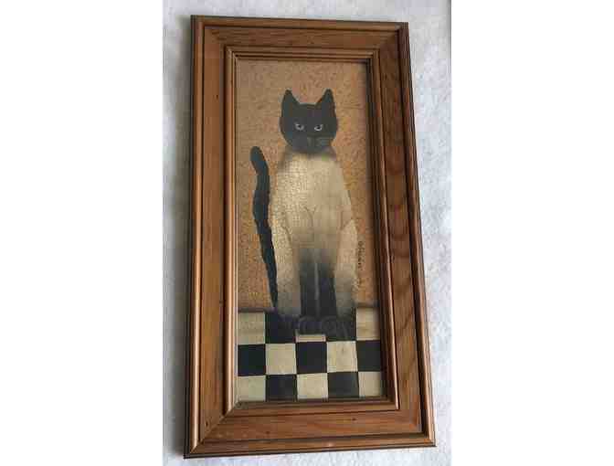 1999 Siamese Country Cat Print by Cindy Sampson Framed 1 In A Series Of 4. Signatur of Cindy Sampson can be seen on the right hand side of the cat. Wooden frame. In great condition