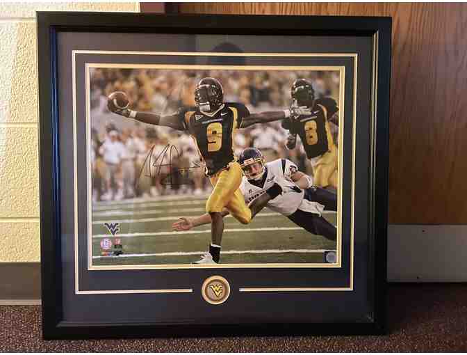 This 24x24 frame features autograted picture of WVU football player #9 Adam "Pacman" Jones.