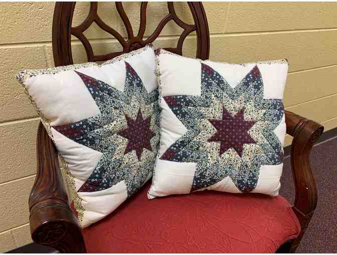 2 Pillows 15x15, Colors of burgundy, green, navy & cream would be perfect to add a touch of charm to your home from Fall into Christmas. With a flowerd pattern, they could also be kept out year round.