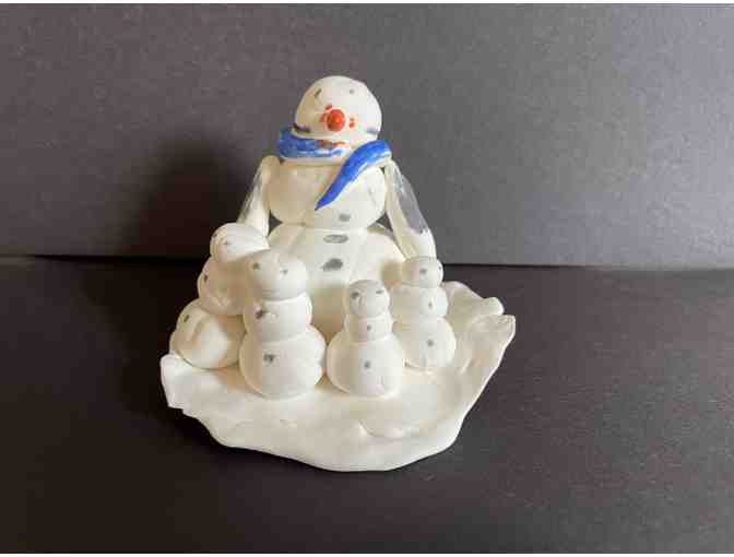 Made of clay this snowman family is 2 1/2 inches tall and was handcrafted and colored by a Boys & Girls Club member. Perfect one of a kind item to add to your Christmas/Winter decor!