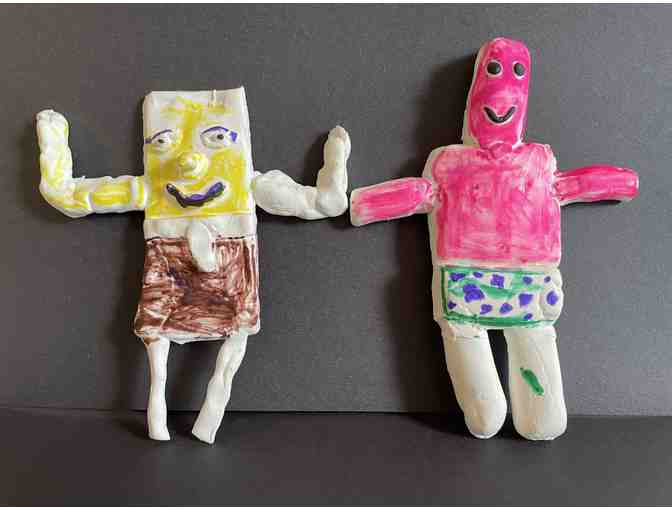 Clay depiction of two favorite cartoon characters stand 6 1/2 inches tall. You two Bob and best friend, handsclupted and colored by a Boys & Girls Club member.