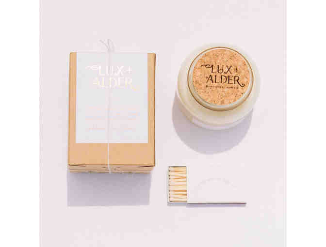 Lux + Alder's Classic Collection candles are sensual blends to set the mood, clear the air and elevate the space. They are made from 100% all-natural soy wax, phthalate-free premium fragrance oils, a cotton wick, a cork top, and a 50% recycled content glass vessel. Lux + Alder is a home fragrance line committed to nurturing connection and enriching experience. All-natural soy candles are hand-poured in the heart of Kakaako, Oahu.