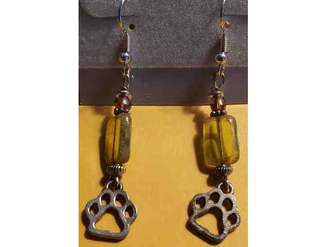 2" Earrings - Peridot Glass Bead with Silver Paws