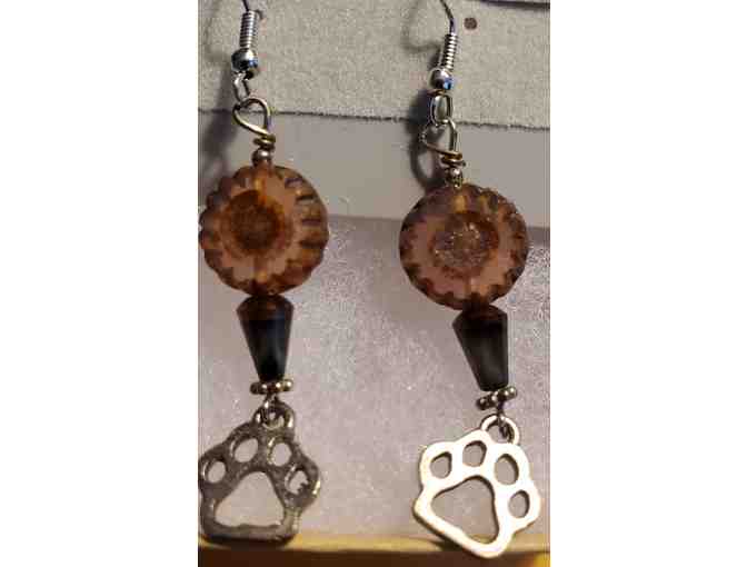 2" earrings with Topaz colored Glass Beads with Silver Paws