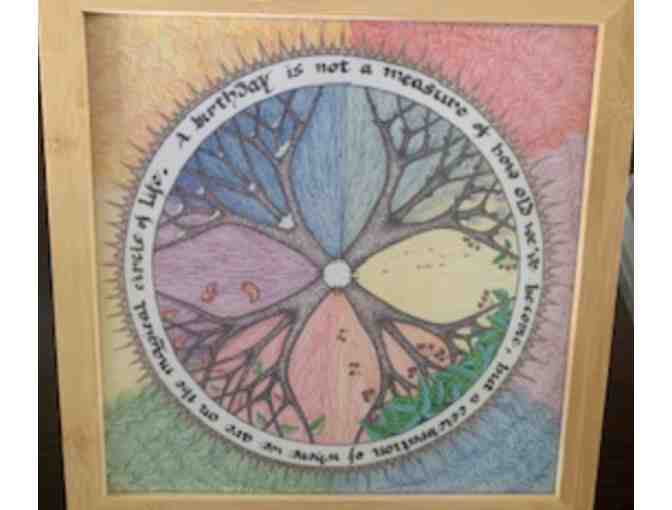 Framed pen and pencil drawing - "A birthday is not a measure of how old we've become, but a celebration of where we are on the magical circle of life."