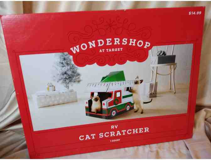 Don't let your cat be left off the Christmas list! This kitty RV scratcher is the perfect item for under the tree. It even comes complete with a string of fake lights. Meow-y Christmas kitty!