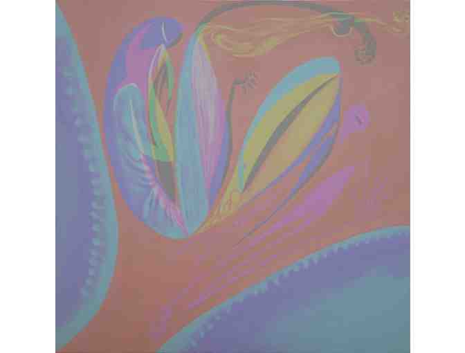 Note from the Artist: I’ve developed a process I call Monochromatic Morphology. A hybrid of science and art that uses the primary nature of red, green and blue as a filtration device that divides a painting into a tryptic like sequence of three scenes. The following stories trace their way through the universal narratives that unite cultural boundaries and put in play the human morphology. This is one painting that changes into three scenes via color filtration by light, glass or other substrates/