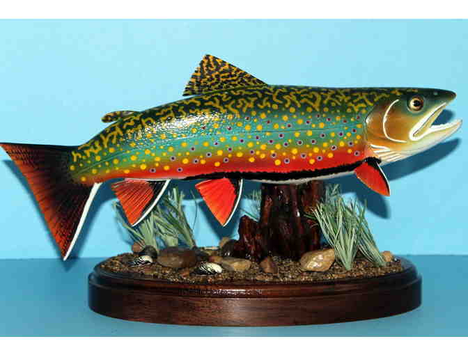 This beautiful 14-inch brook trout carving was done by Carl A. Rettenberger. This carving takes Carl 7 hours per inch to complete, so 98 hours of work was put into this beautiful piece, and the price is well worth the item!