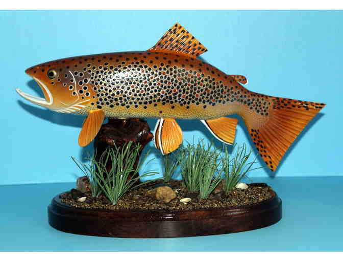 This beautiful 14-inch brown trout carving was done by Carl A. Rettenberger. This carving takes Carl 7 hours per inch to complete, so 98 hours of work was put into this beautiful piece, and the price is well worth the item!