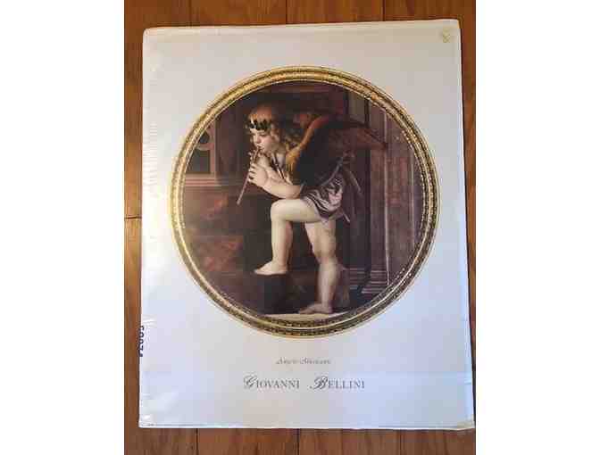 Gorgeous poster print, "Angel Musicante," by Italian Master, Giovanni Bellini. Printed in Italy in 1995, this poster is no longer available online. Original wrapping. Personalize this print with your selected frame and own a piece of Renaissance art!