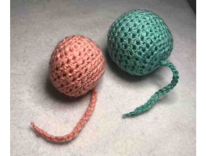 Set of 2 catnip ball toys. Contains USDA certified organic catnip (PetLinks Pure Bliss catnip). Each measures approx 1.5 - 2 inches in diameter