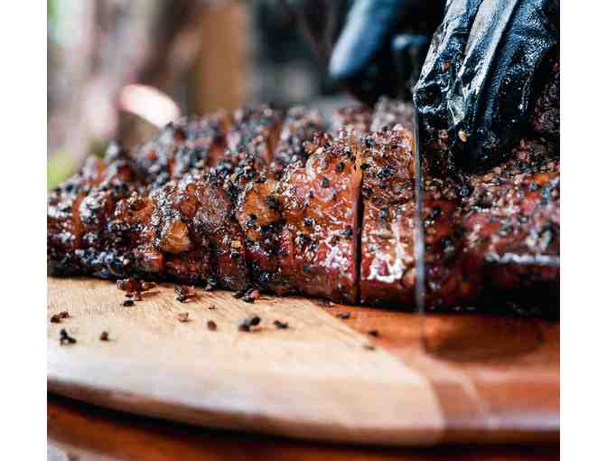 The Smoke Doctor, the local source for savory barbecued meats, presents this package to tease your taste buds: 2 sampler platters heaped with brisket, pulled pork, chicken, and ribs with your choice of 2 sides each (mac 'n' cheese, loaded mashed potatoes, baked beans, collard greens, cole slaw, or slices of freshly baked cornbread). Enjoy it all while wearing a Smoke Doctor T-shirt.