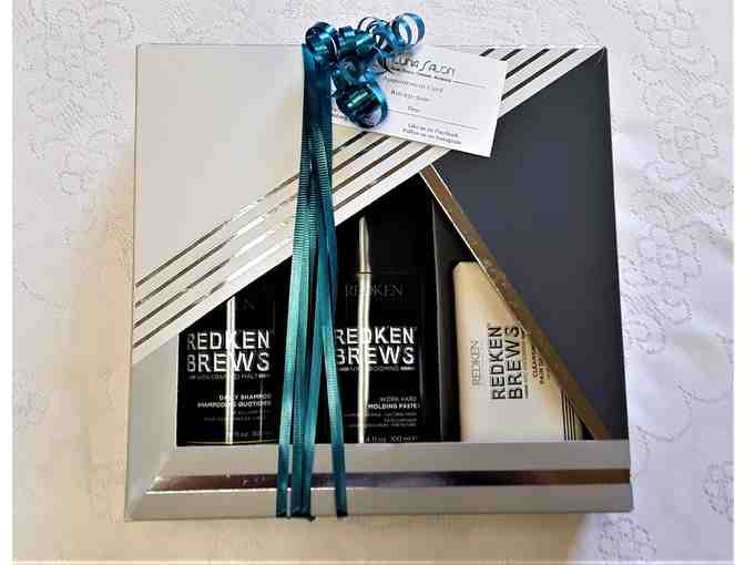 From Luna Salon and Spa in Hamburg comes this 3-piece set of men's professional-quality products to keep them always looking and smelling their best: Redken Brews daily shampoo, molding paste, and cleansing bar. Included with the package is a coupon for $10 off any service in the shop.