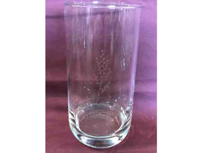 This cute 16 oz etched glass tumbler features a delicate etched design