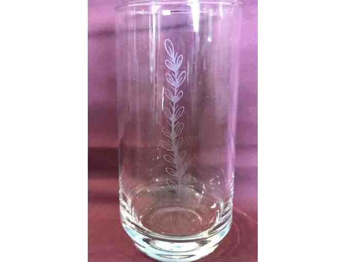 This cute 16 oz etched glass tumbler features a delicate etched design