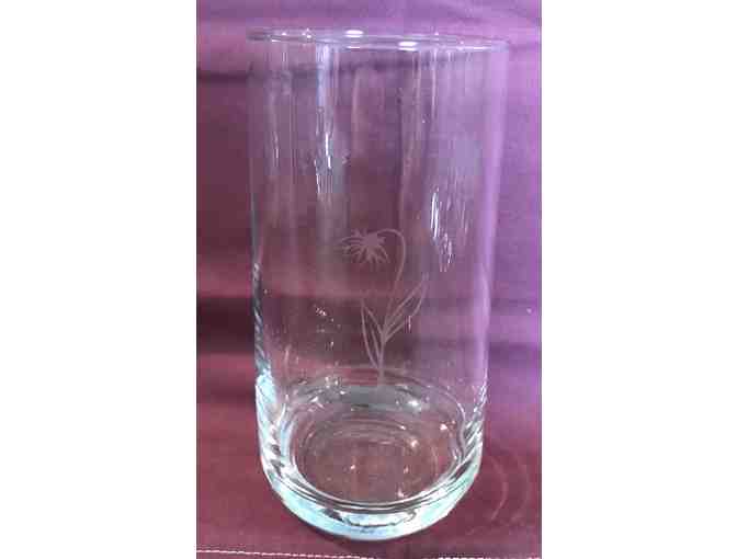 This cute 16 oz etched glass tumbler features a delicate etched design