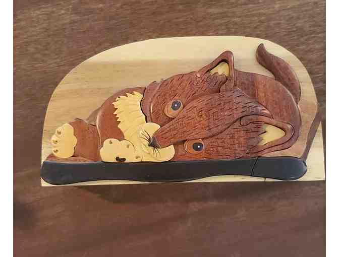 Carver Dan Puzzle Fox Box- Preowned in excellent condition. Very cute item to hide that secret somethin.  Handmade in Vietnam
