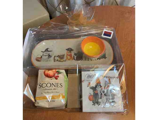 - Ceramic Appetizer Plate, 13.5 x 6.25 x 3.25, dog costume design with matching candy corn bowl