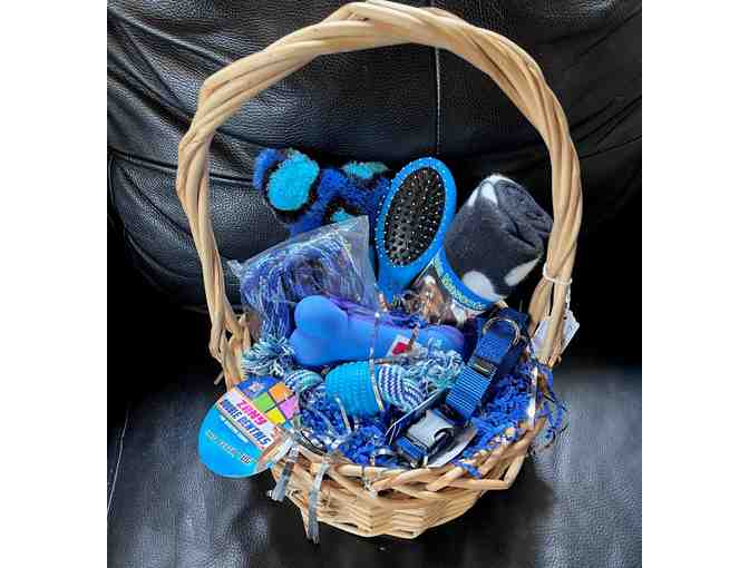 Basket of Dog Toys with a blue color theme.