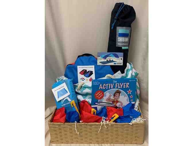 Beach Tote Bag, Blanket, Shibumi Shade, Portable Corn Hole Game, Flying Rings