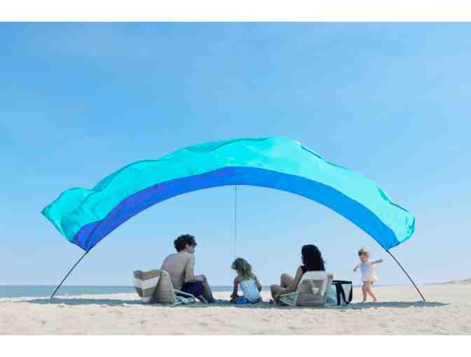 Shibumi Shade - You have to see it to believe it! Weighing less than 4 pounds, the amazing Shibumi Shade can be carried by any member of the family. One person can set it up in a couple of minutes, providing shade for 6 with room for beach gear too!