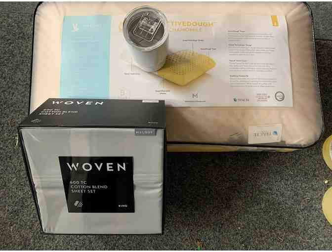 Snuggle into winter with these king sized 600ct cotton blend bed sheets from Sierra Mattress Company. Package also includes a Malouf Foundation ActiveDough and Chamomile pillow. Also includes a branded Sierra Mattress Company tumbler cup, 12 plastic clip on bottle openers and Sierra Mattress Company stickers.