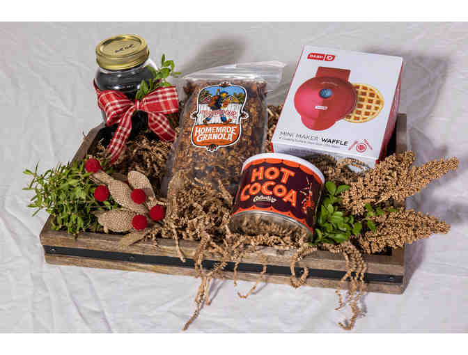 Treat someone -- or treat yourself -- to breakfast in bed this holiday season. This breakfast tray includes a mini waffle maker, homemade granola, maple syrup, hot chocolate, and a gift card for breakfast at Mimosa
