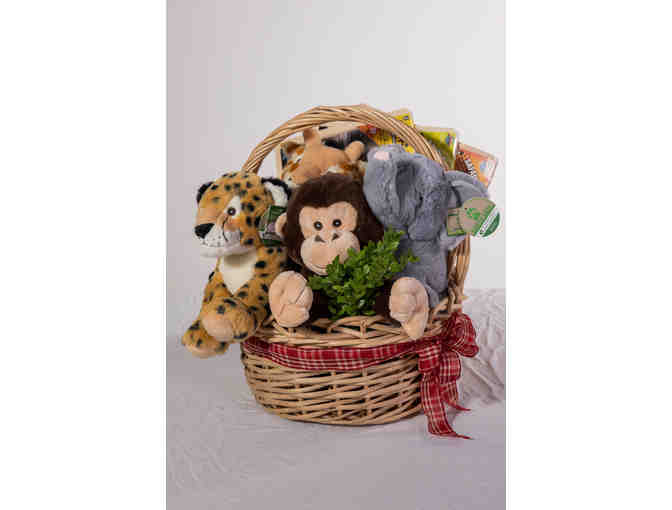 A perfect holiday gift for your little ones. This basket includes a12" Plush Monkey, 12" Plush Giraffe, 12" Plush Elephant, 12" Plush Cheetah, plus three animal jigsaw puzzles.