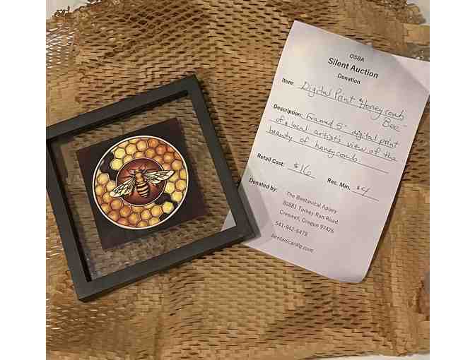 Framed 5inch digital print of a ocal artist view of the beauty of a honey comb
