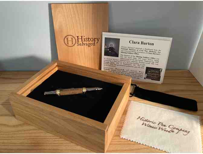 This beautiful handcrafted ballpoint pen is made from wood from Clara Barton's actual office! Donated by the one-of-a-kind company: History Salvaged, Bob DeMartino Founder & CEO!