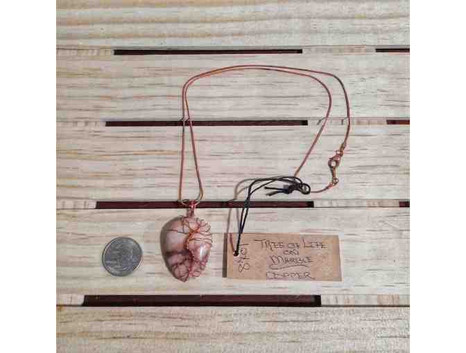 Handmade Natural Marble Gemstone Pendant and Necklace with tree of life solid copper wire wrap